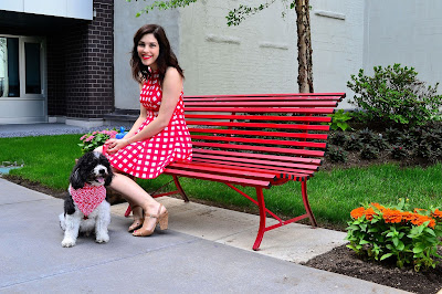 Today Rocko and I were enjoying some of this lovely weather in our courtyard. Him in a dog bone print and myself in gingham...and both in red. He might not have been so happy that we dressed like twins...but I won this battle. Aren't we just adorable together!?!?!